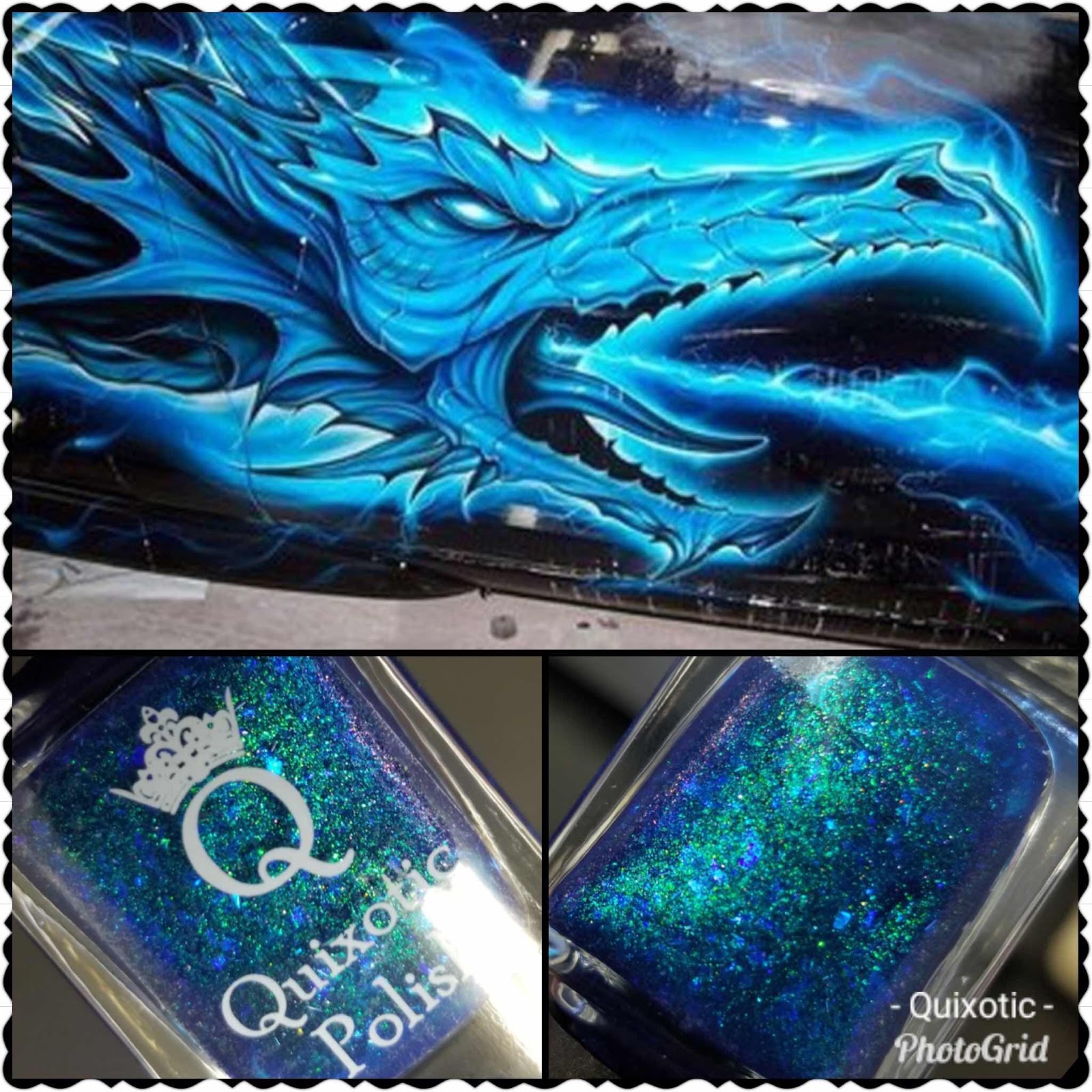 Quixotic Polish is back for the month of May with a brand new theme- graffiti art! Mary was inspired by a beautiful dragon graffiti art and the polish she made is a prefect representation of the art.